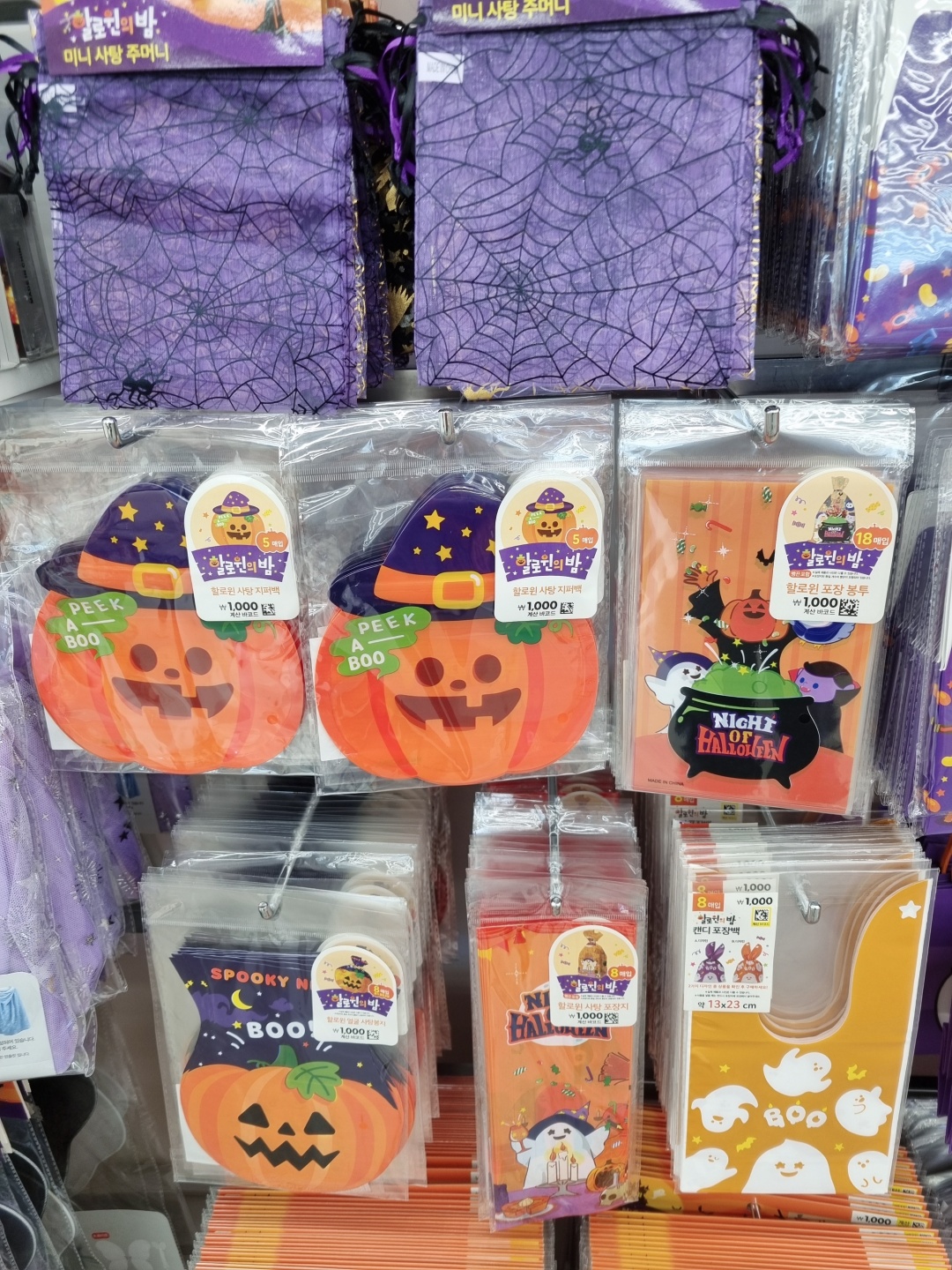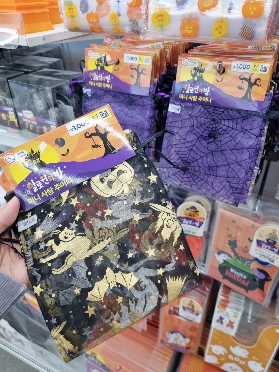 비닐 포장지들도 아주 다양합니다. 할로윈 포장용품은 다이소만 둘러 보셔도 선택지가 충분하실 것 같아요.