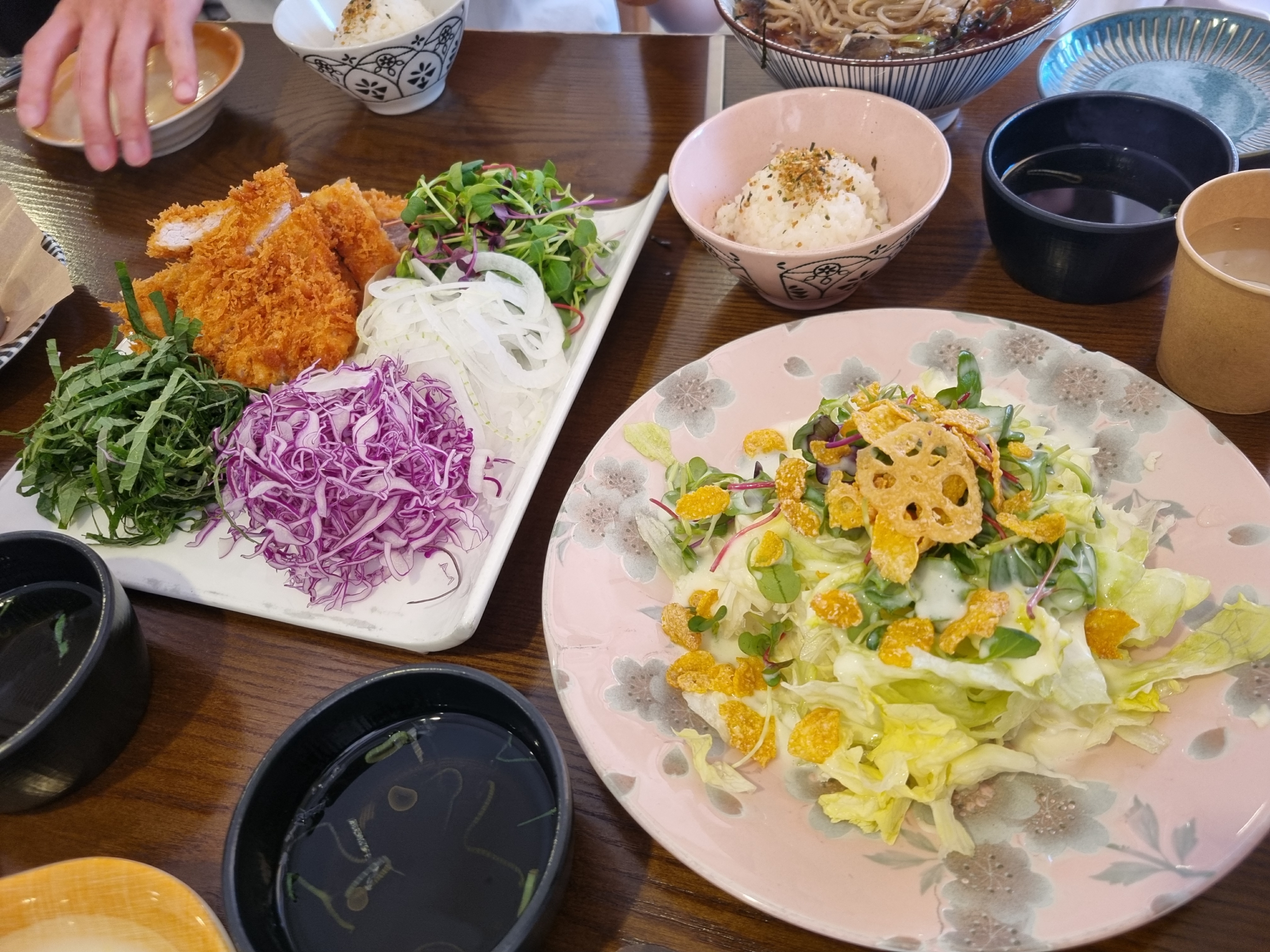 쌈무랑 야채,돈가스 올려 소스 찍어