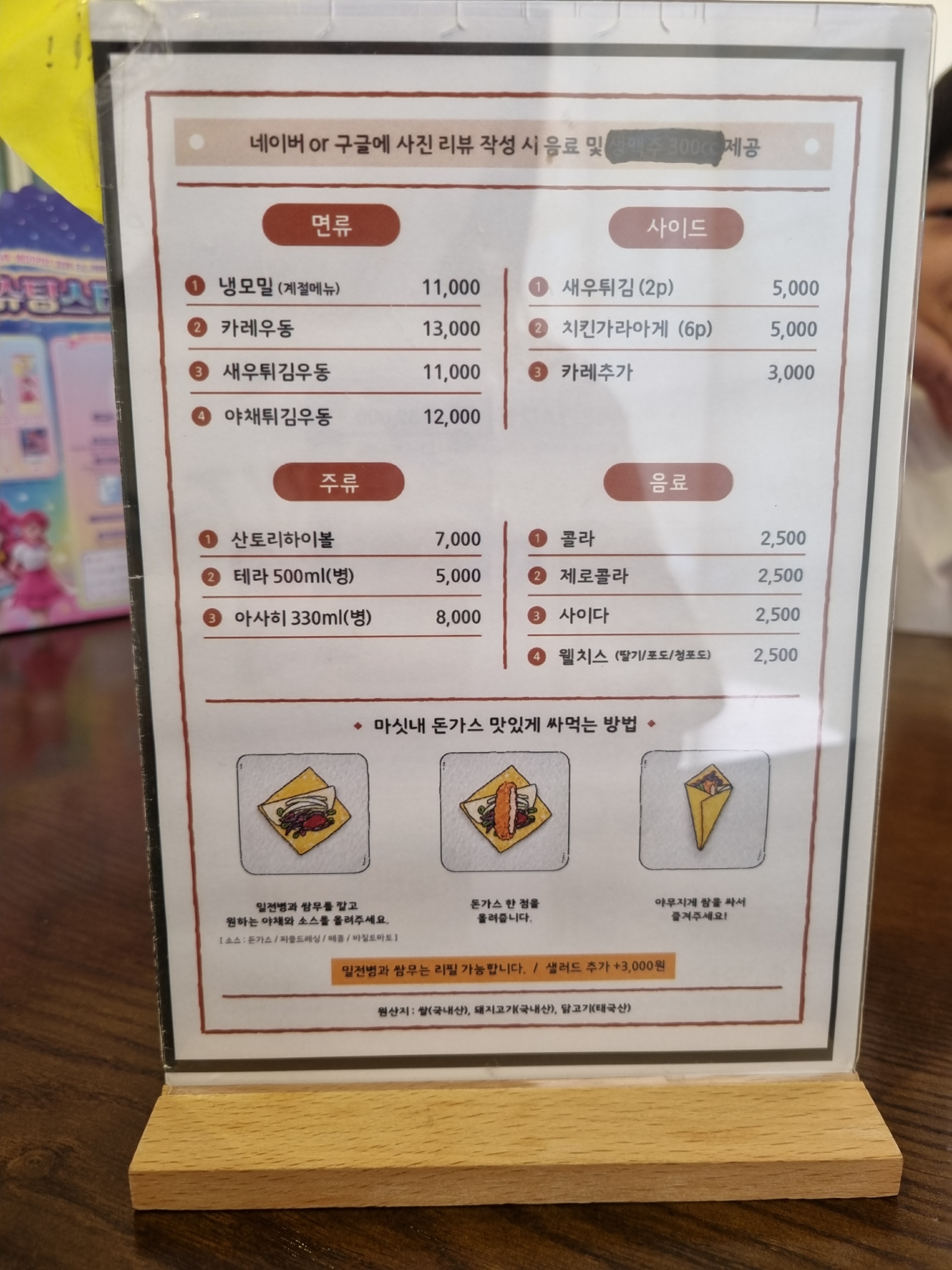마싯내돈까스 메뉴판.
