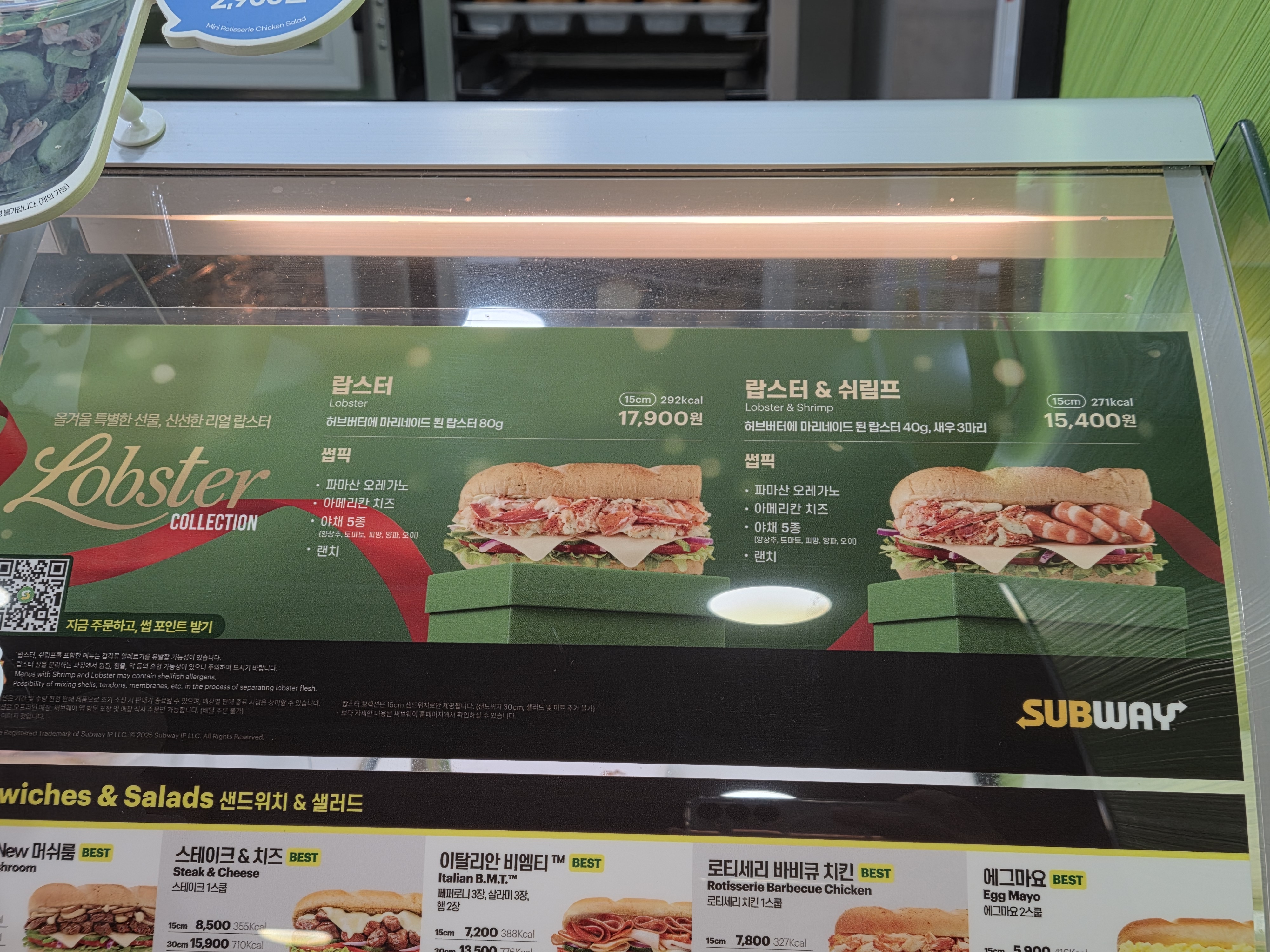 서브웨이에서 올해도 랍스터 컬렉션이 나왔습니다.