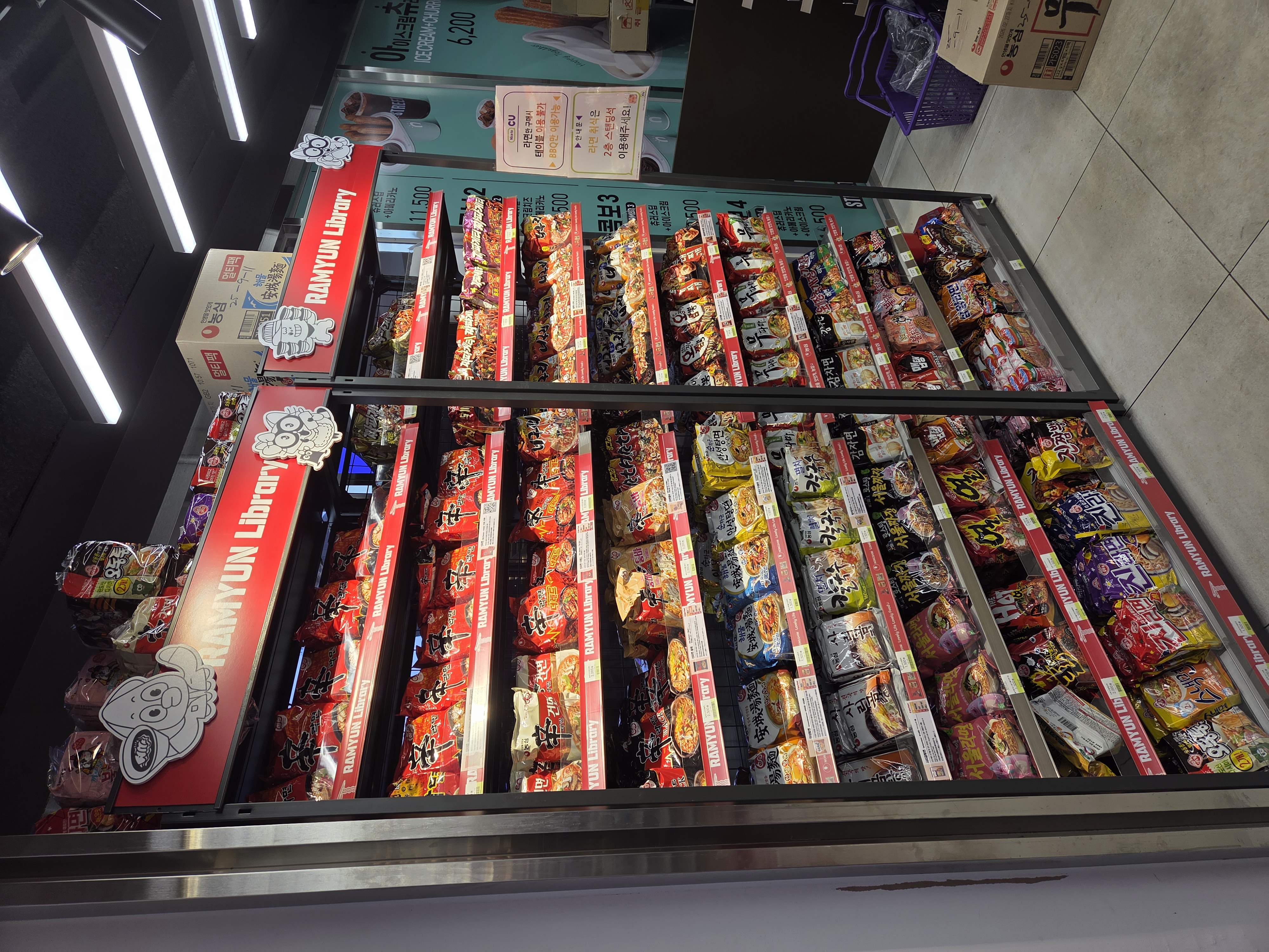 여기에서 라면을 구입해서 2층에 있는 기계를 이용,